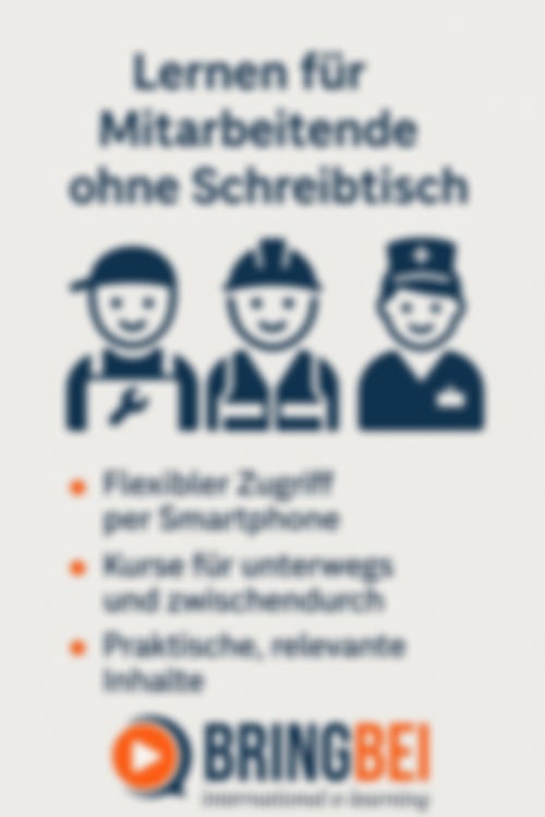 80 % der Mitarbeiter weltweit arbeiten nicht am Schreibtisch – warum sollten ihre Schulungen dort stattfinden? Ob Außendienst, Produktion oder Büro: Unterschiedliche Arbeitsumfelder erfordern maßgeschneiderte Lernlösungen.
